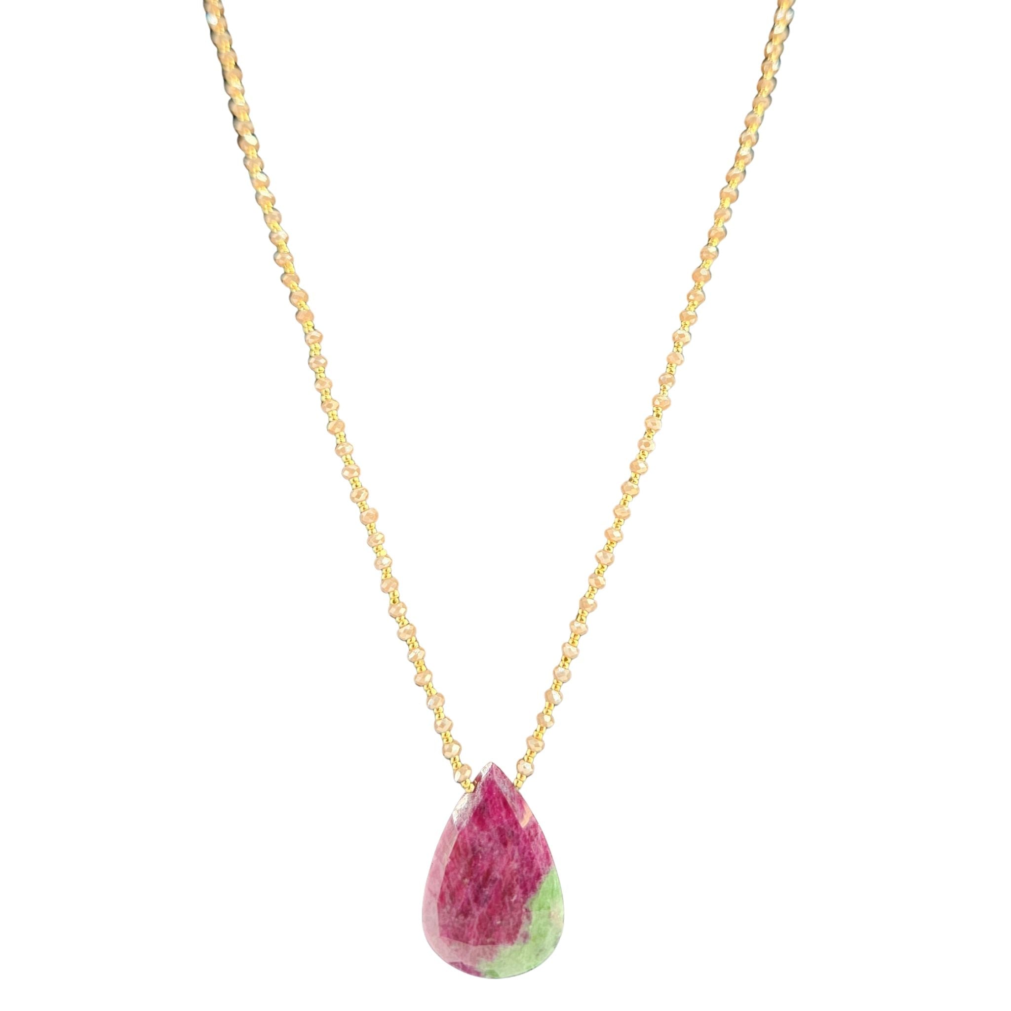 Ruby Zoisite Purple and Green Stone Teardrop Necklace