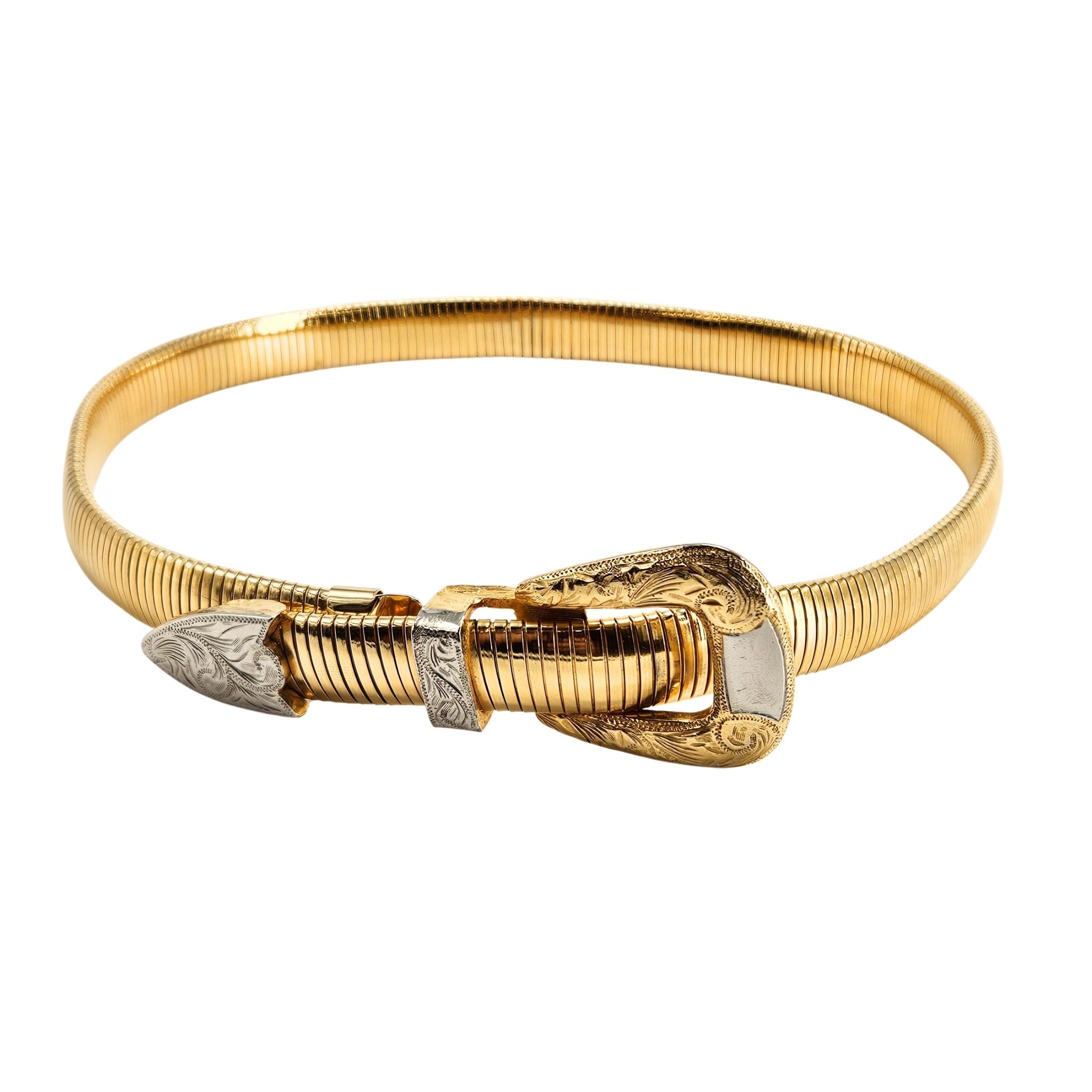 Vintage 1970's Western Snake Stretch Belt Goldtone. 22"-30"