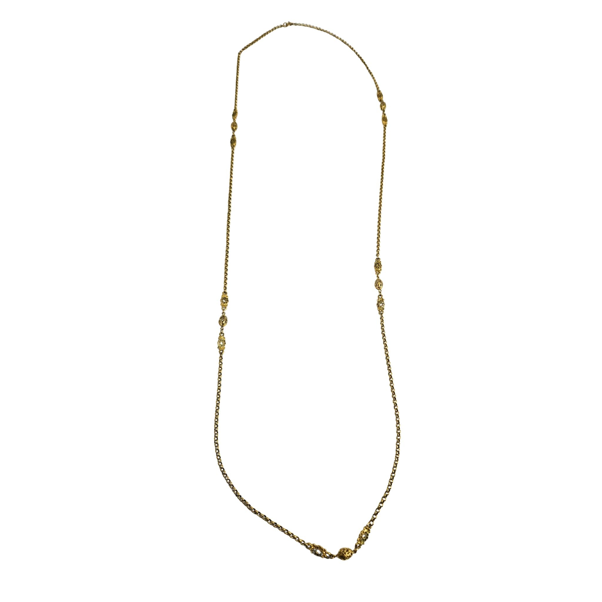 Vintage 1970's Goldtone Filigree Station Luxury Long Necklace. 54" length